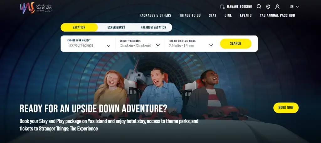 Theme parks: Ferrari World, Yas Waterworld, and Warner Bros. World